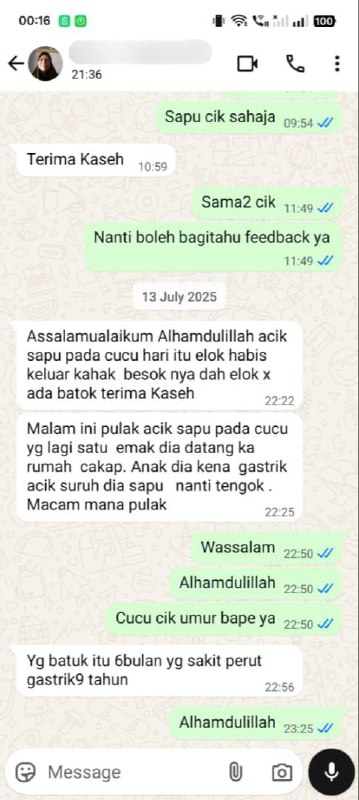 “Saya dengan anak saya elok sangat. Batuk hilang, kembung perut pun boleh hilang juga.”