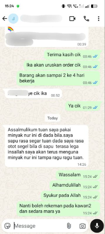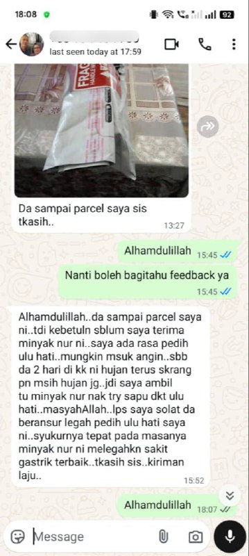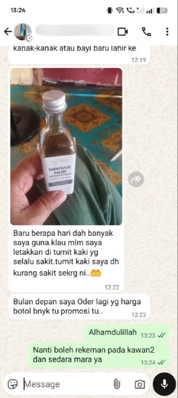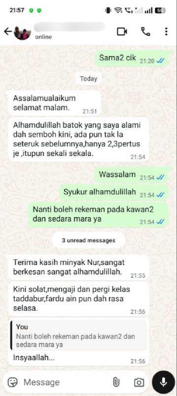 Dengan Minyak Nur, anda kini boleh ucapkan selamat tinggal kepada masalah seperti gastrik, sakit sendi, kebas, dan angin badan.