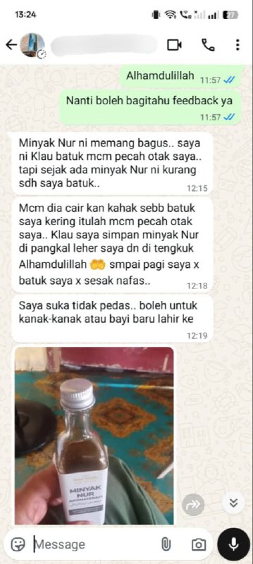 "Batuk keluar kahak berlendir, sekali sapu sahaja Minyak Nur terus lega"